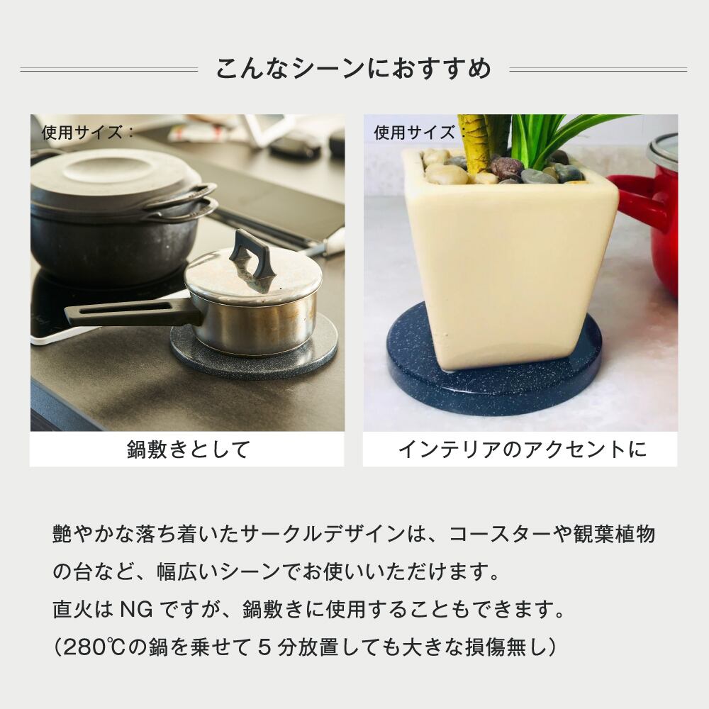 Mサイズ 自由自在!お洒落なコースターにも 人工大理石製サークルプレート